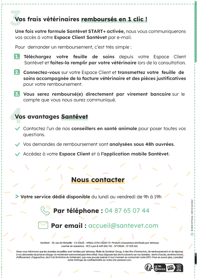 Avec notre partenariat Santé Vet, vous bénéficiez d'une assurance santé complète.